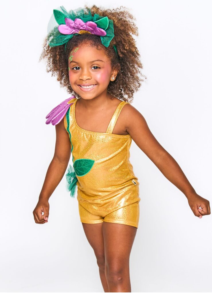 A fantasia Bem Me Quer promete florir a avenida. Produzida em malha brilhosa, a peça possui apliques de flores e muito brilho. O acessório, vendido separadamente, completa o look com ainda mais fofura.