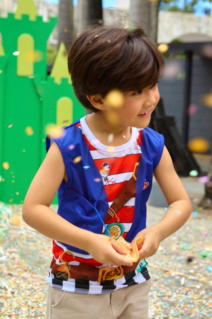 Já a fantasia infantil Piratinha conta com regata em malha respirável, silk divertido e aplique interativo com mapa do tesouro, estimulando a imaginação das crianças enquanto brincam.